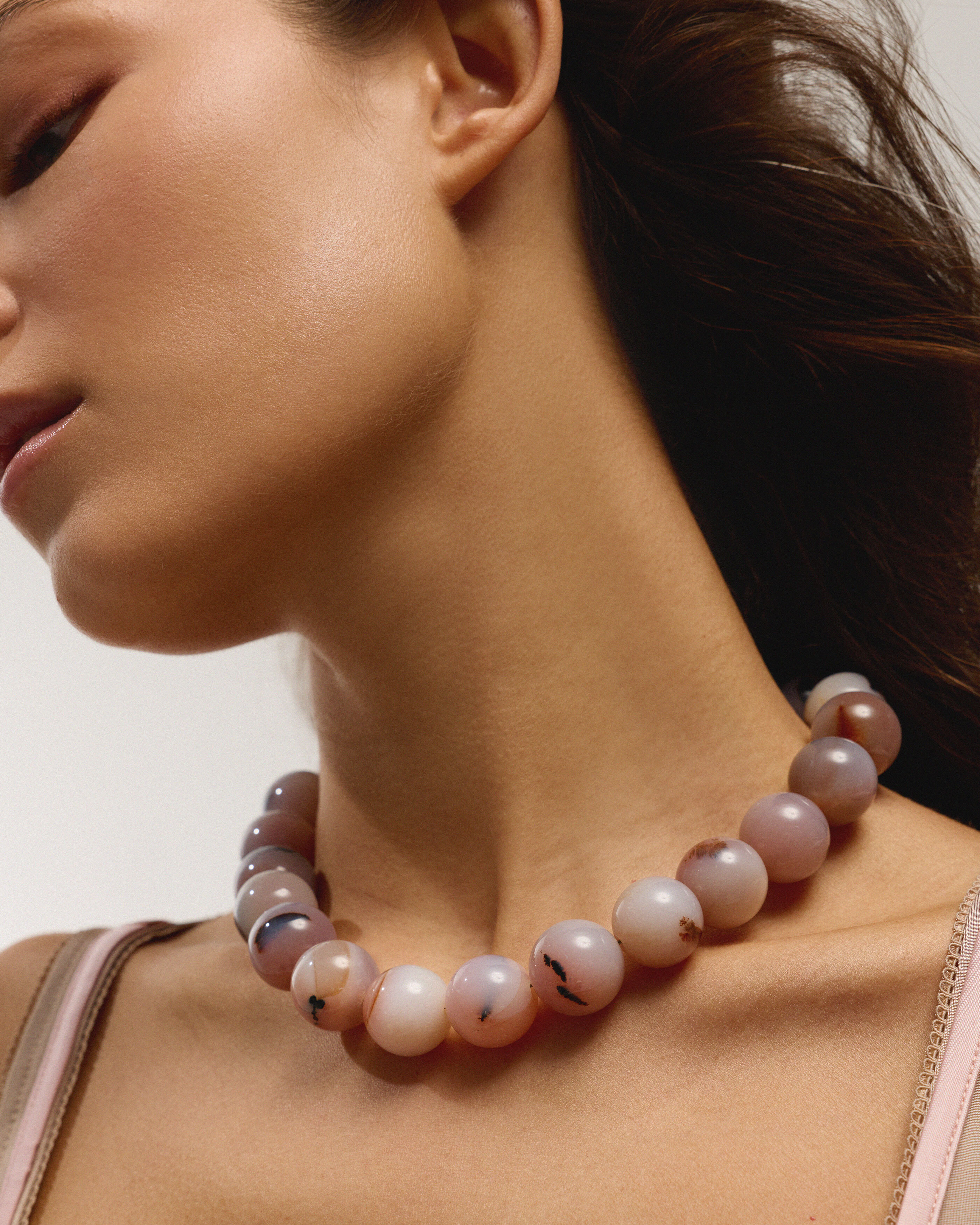 Бусы из розового агата